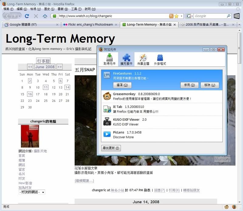 現在我幾乎都用Firefox在瀏覽網頁,推薦給大家,尤其是有在攝影的朋友,一定要來玩玩看那個PicLens